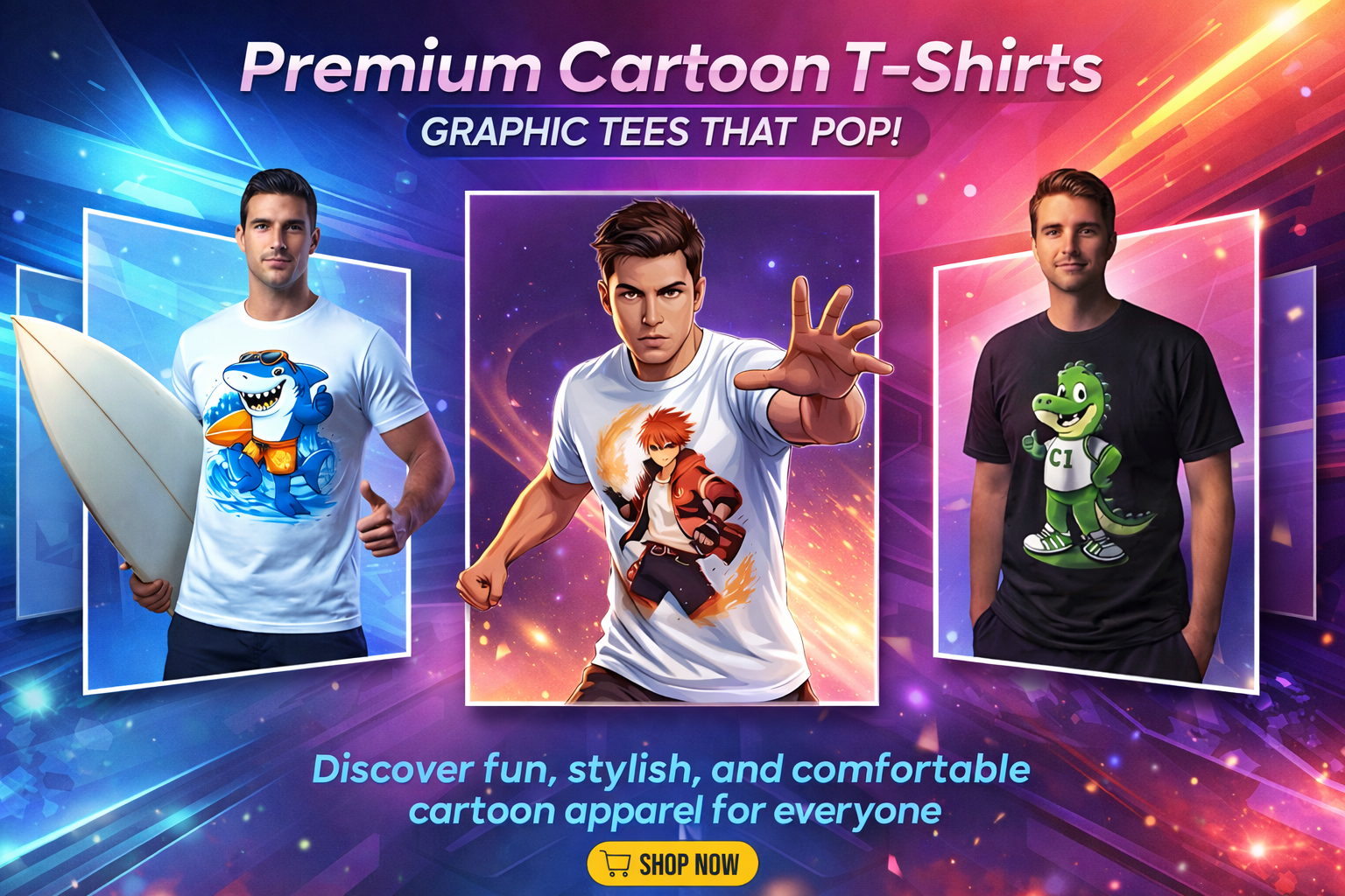 Shark Cartoon Printed T-Shirt – Cool Ocean Graphic Tee
